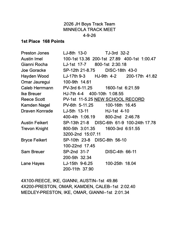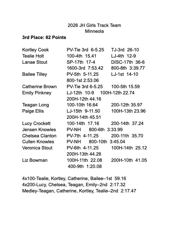 Please see the attached Junior High Track Results from their track meet at Minneola last week.